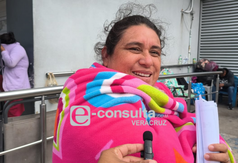 Veracruz, Ver.— En medio del descenso en la temperatura que dejó el Frente Frío 25, María del Rosario Hernández pasó su primera noche a las afueras del Hospital Infantil de Veracruz —también conocido como la Torre Pediátrica— a la espera de recibir noticias sobre su nieta recién nacida.