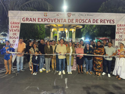 San Andrés Tuxtla, Ver., 5 de enero de 2025.- Con la finalidad de impulsar el comercio local de San Andrés Tuxtla, el Gobierno Municipal inauguró este domingo la primera Gran Expo Venta de Roscas de Reyes hechas por manos sanandrescanas.