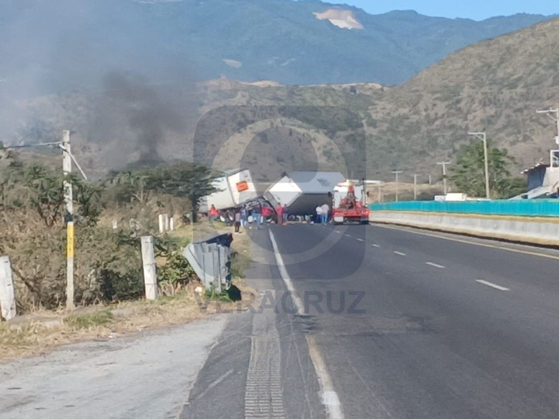 Nogales, Ver. – Sin importar el fuego ni el riesgo de explosión, decenas de personas saquearon la mercancía transportada por tráileres que minutos antes protagonizaron un accidente sobre la autopista Esperanza–Ciudad Mendoza.