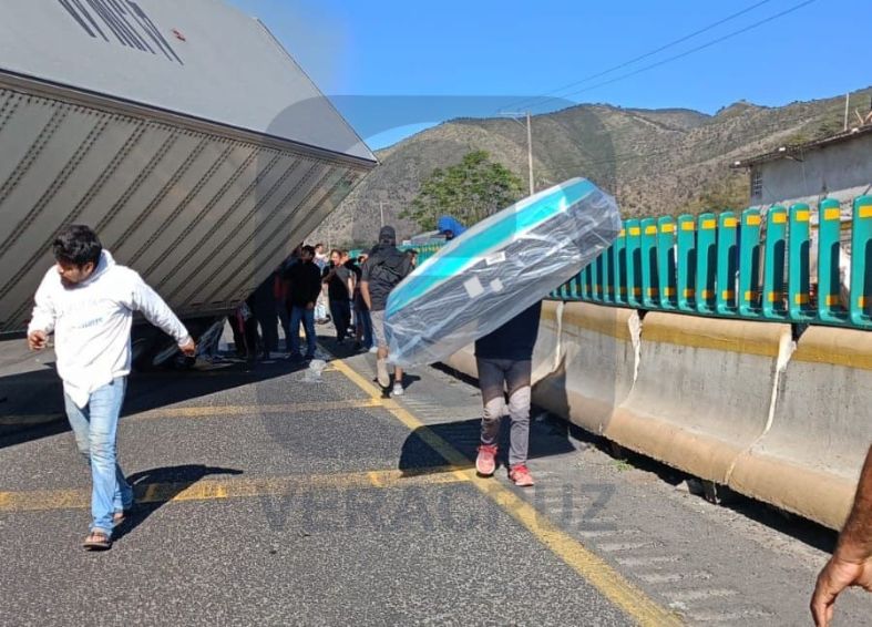 Lejos de auxiliar o resguardarse, habitantes de comunidades cercanas arribaron al lugar con el objetivo de apoderarse de la mercancía siniestrada. Una de las cajas del tráiler fue forzada, pese a contar con candados de seguridad, y fue vaciada por completo.