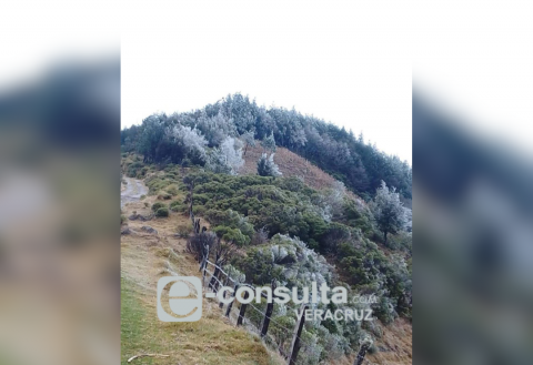 El fenómeno natural, propio de la temporada invernal, sorprendió a habitantes y visitantes al transformar cerros y caminos en un escenario poco común en la entidad veracruzana, donde las bajas temperaturas se hicieron sentir desde las primeras horas del día.