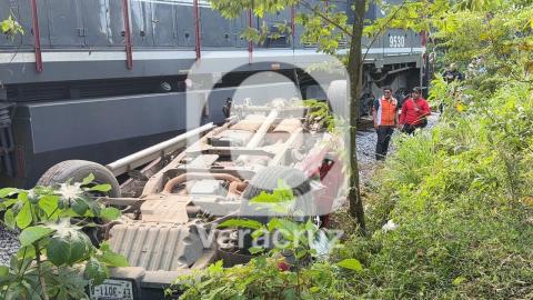 Tren embiste camioneta con 6 pasajeros en Cosoleacaque