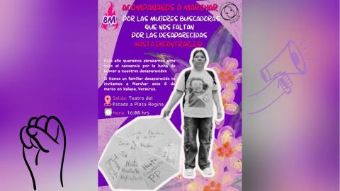 Ese mismo día, el Colectivo Buscando a Nuestros Desaparecidos y Desaparecidas Veracruz también participará en una marcha para recordar a las mujeres desaparecidas, sumando la exigencia de justicia y búsqueda a las actividades del 8M en la capital del estado.