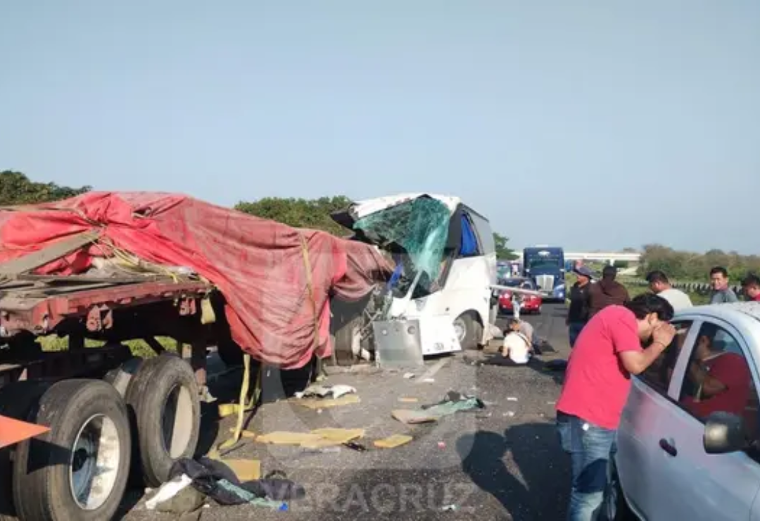 Según testigos, el conductor de un camión de la línea turismo Lucero Raliuga Tour -procedente de Ciudad Juárez, con destino a Acayucan y Coatzacoalcos- no pudo frenar y se impactó contra una plana de tráiler cargada de varillas.