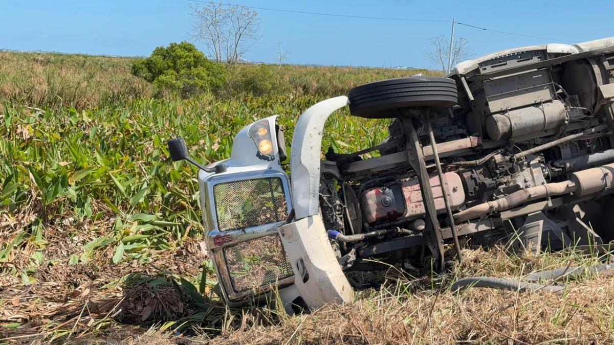 Chofer se duerme y vuelca tolva cargada con cemento en “Las Matas”