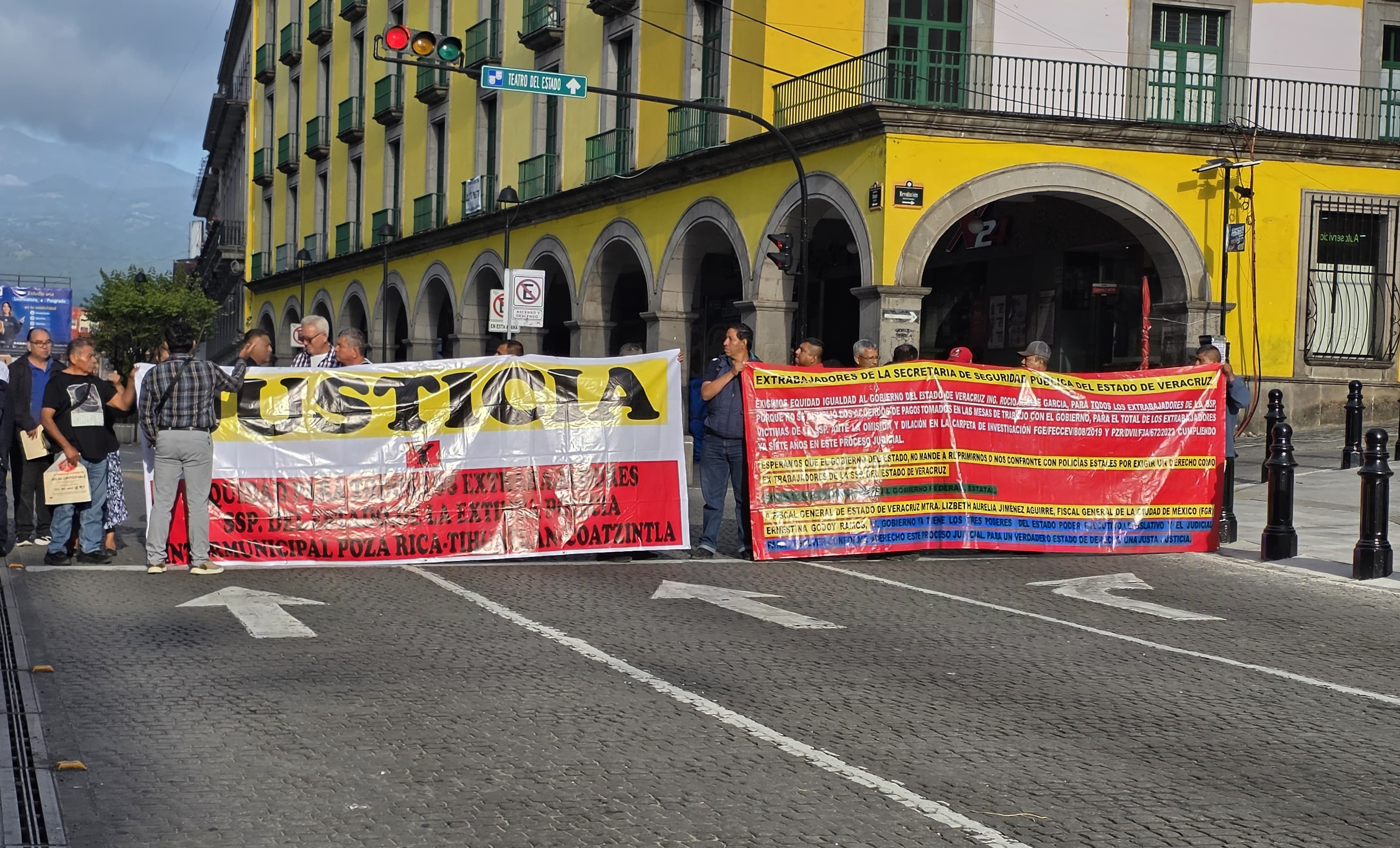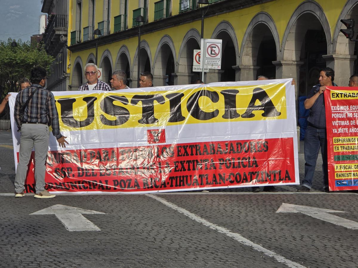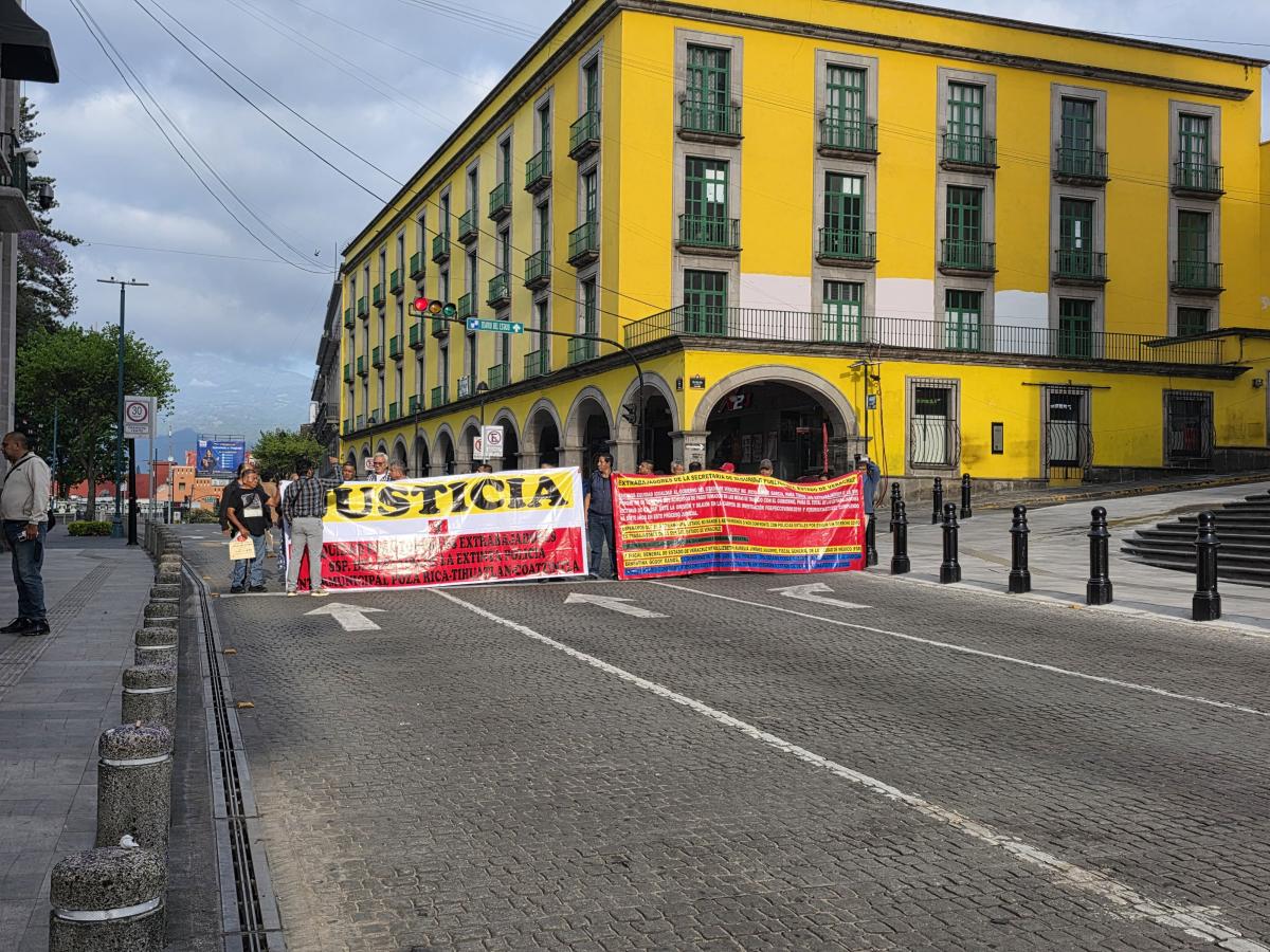 Xalapa, Ver.– Exintegrantes de la desaparecida Policía Intermunicipal Poza Rica–Tihuatlán–Coatzintla (PIPTC) bloquearon la calle Juan de la Luz Enríquez, frente al Palacio de Gobierno en Xalapa, para exigir el pago de indemnizaciones pendientes desde 2015 y denunciar la pérdida total de sus expedientes legales.