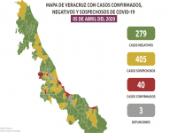Suman 405 pacientes sospechosos por covid-19 en Veracruz Miguel Ángel León CarmonaDomingo, Abril 5, 2020 - 22:02Secretaría de Salud confirmó 405 casos sospechosos y 279 casos negativos; se mantiene en tres la cifra de defunciones en la entidadLeer más
