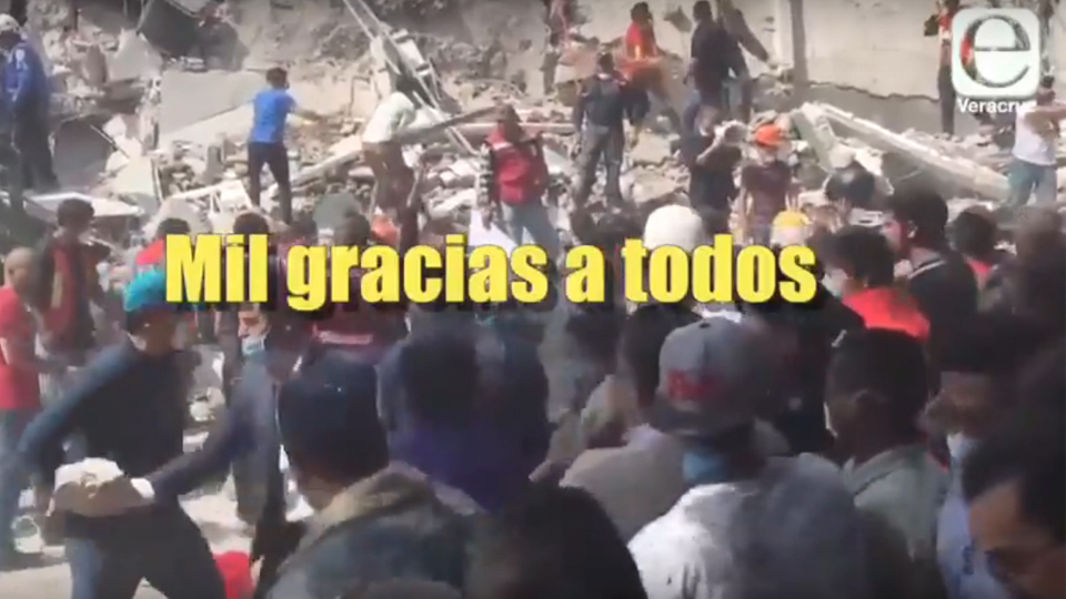Gracias, a los miles de voluntarios, a los artistas con altruismo, a quienes donaron y ayudaron en centros de acopio, a rescatistas y Marina, a los amigos caninos buscadores, al equipo imparable de Topos, a los brigadistas extranjeros, a los hermanos migrantes que detuvieron su paso, a quienes no pararon sus labores, a todos, México les agradece de corazón.
