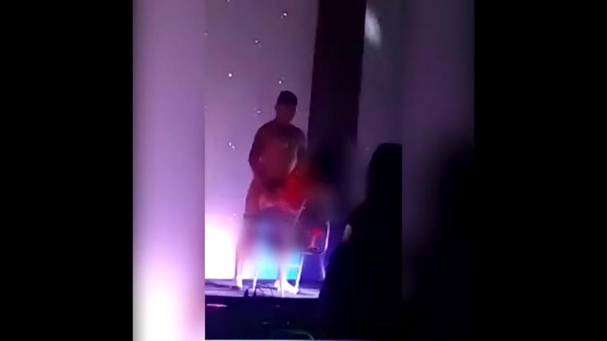 En el video se observa a un stripper y a una de las asistentes en el escenario teniendo relaciones sexuales.