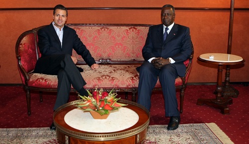 Mientras el país hierve y se polariza por la discusión y la aprobación de la reforma energética, el presidente Enrique Peña Nieto se reunió este día con el Ministro de Petróleo y Energía de Costa de Marfil, Adama Toungara.