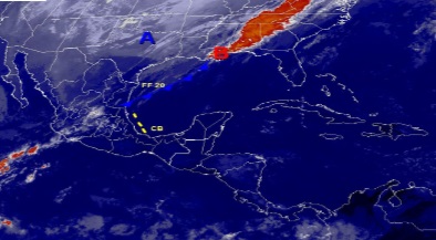 La masa de aire polar que origina al frente número 20 y a otro secundario, analizado sobre Texas, ocasionaría a partir de la tarde-noche de hoy un evento de norte con rachas fuertes a intensas del lunes a la madrugada del martes, principalmente entre Laguna Verde y Coatzacoalcos, menores en la región de Xalapa, oleaje de 3 a 4 metros cercano al litoral y descenso de temperatura. El evento perdería intensidad el martes pero el viento se mantendría de dirección norte la mayor parte de la semana.