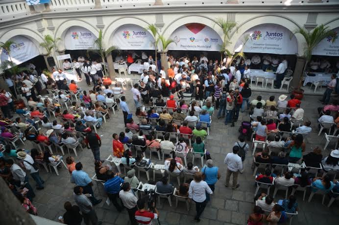 El patio central del Palacio Municipal, lució lleno la mañana de este miércoles, en donde más de 500 ciudadanos se acercaron a las mesas de atención, desde las nueve de la mañana, para ser atendidos por funcionarios públicos municipales en las ramas de Gobernación, Registro Civil, Trámites y Licencias, Infraestructura y Obra Pública, Centro Histórico y Mantenimiento Urbano, Servicios Públicos, Desarrollo Social y Humano, DIF, Consejo de Protección Ciudadana y Vialidades, Protección Civil, Bomberos, Comercio, Turismo y Cultura, Fomento Agropecuario y Medio Ambiente.