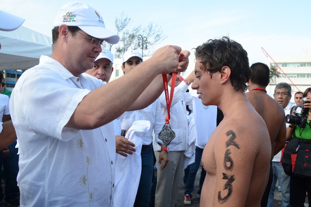 En el marco de los Eventos Conmemorativos de la Gesta Heroica de Veracruz, el Presidente Municipal de Veracruz, Ramón Poo Gil, acompañó este sábado al Secretario Estatal de Turismo, Cultura y Cinematografía, Harry Grappa, así como a Carlos Sosa Ahumada, Director del Comité Organizador de los Juegos Centroamericanos y del Caribe 2014 y al Director del Instituto Veracruzano del Reporte, Rafael Cuenca, a la Travesía de Aguas Abiertas “Fuga de San Juan de Ulúa”, evento deportivo en el cual participaron más de 400 nadadores de diversas partes de la República Mexicana.