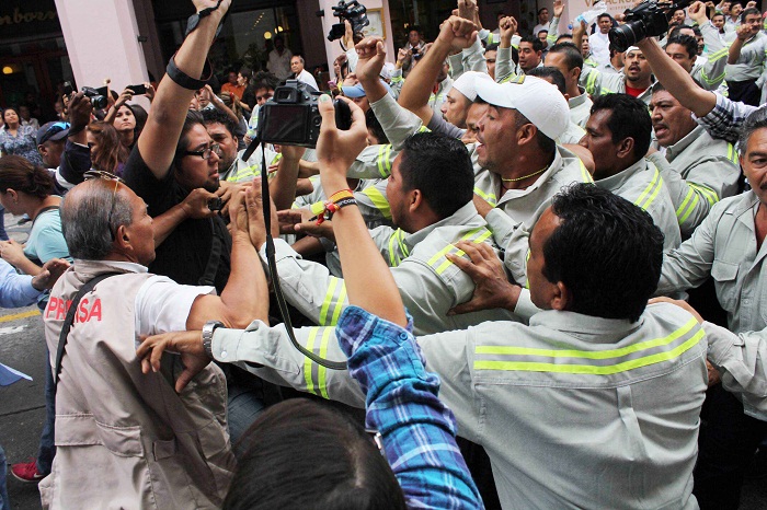 Veracruz, Ver.- Luego de las agresiones a reporteros de varios medios de comunicación, en el desfile cívico del Día del Trabajo, el asesor de los disidentes de TAMSA, Bartolo Guevara Moreno, aseguró que no fueron trabajadores los perpetradores de las lesiones sino un grupo de choque del líder sindical Pascual Lagunes Ochoa.