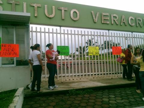 Veracruz, Ver.- Personal de intendencia y profesores del Sindicato de Trabajadores de la Educación de Veracruz se manifestaron afuera del Ilustre Instituto Veracruzano e iniciaron un paro de labores.