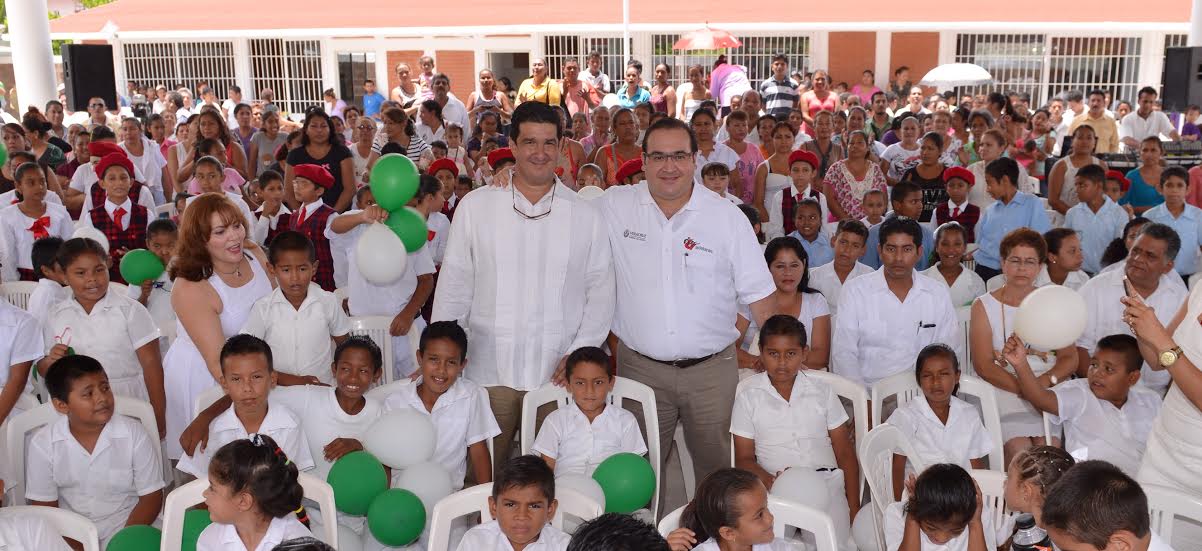 En compañía del alcalde de Alvarado, Octavio Jaime Ruiz Barroso, el Gobernador entregó mobiliario para la Primaria Alfonso Arroyo Flores, de la localidad Luis Martínez, y Escuela Francisco Villa, de la comunidad Punta de Arenas, que otorga Fundación Televisa.