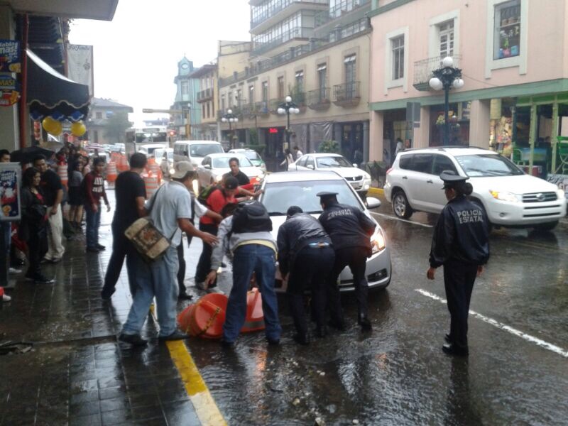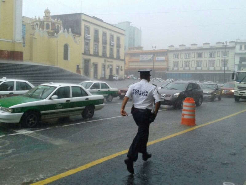 Agentes viales no se daban abasto, tratando de controlar el caos que generó la lluvia en el primer cuadro de la ciudad