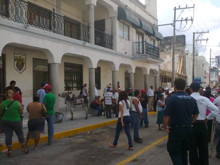 Tierra Blanca, Ver.- Al palacio municipal de esta ciudad llegaron decenas de pobladores a buscar al alcalde Saúl Lara González, a quien pretenden montar en un burro por su mal desempeño en la administración pública.