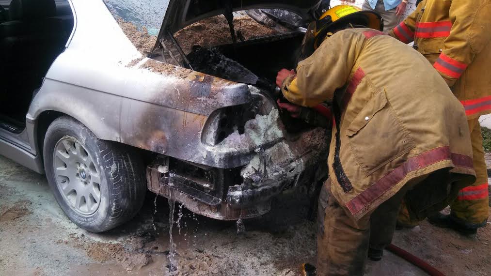 Un vehículo de lujo que presentó una falla en el sistema eléctrico, estuvo a punto de ser consumido por el fuego la mañana de este miércoles en la colonia El Mirador; la oportuna intervención de los bomberos y Protección Civil evitó un incidente mayor.