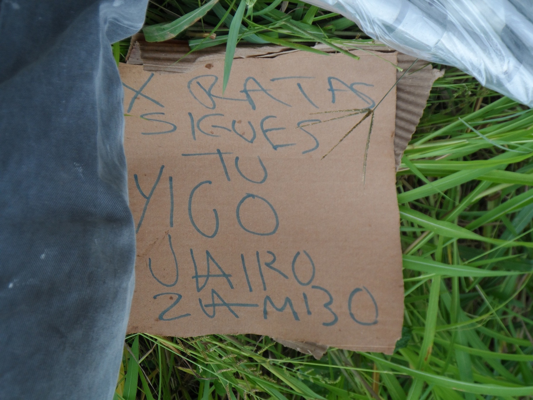 Junto al cadáver dejaron un mensaje escrito en un cartón que decía "Sigues tu Yigo Jairo Zambo".