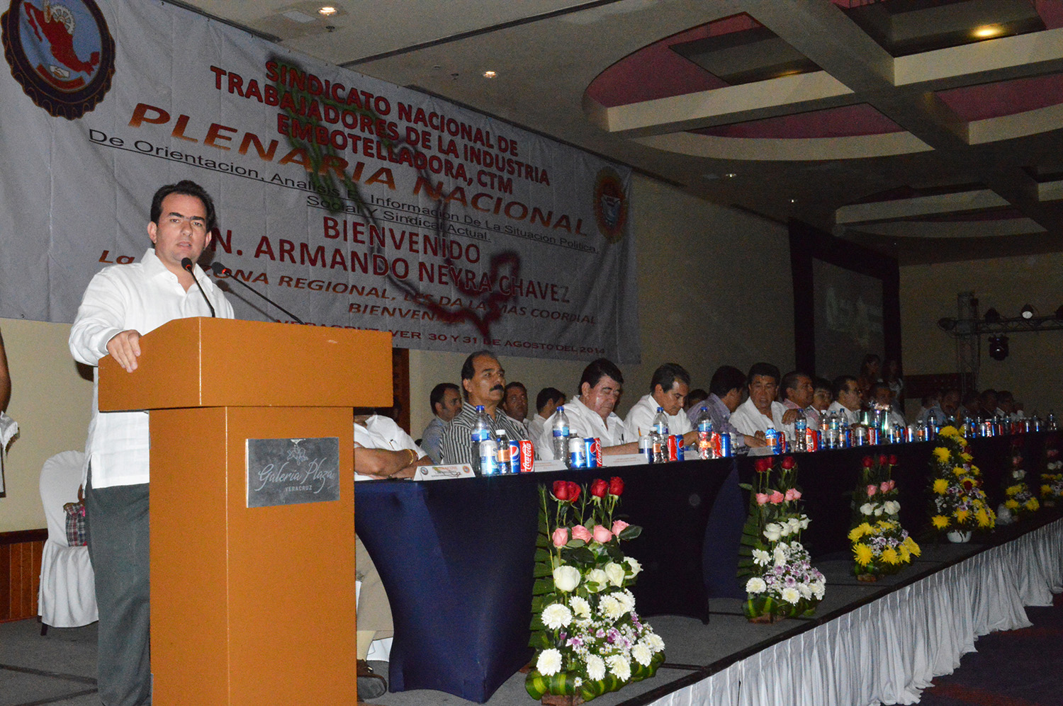 Veracruz, Ver. Con la finalidad de refrendar su compromiso con los sectores productivos de Veracruz y el país, el Senador de la República, Pepe Yunes, asistió a la plenaria nacional del Sindicato de Trabajadores de la Industria Embotelladora CTM que encabeza el senador Armando Neyra Chávez.