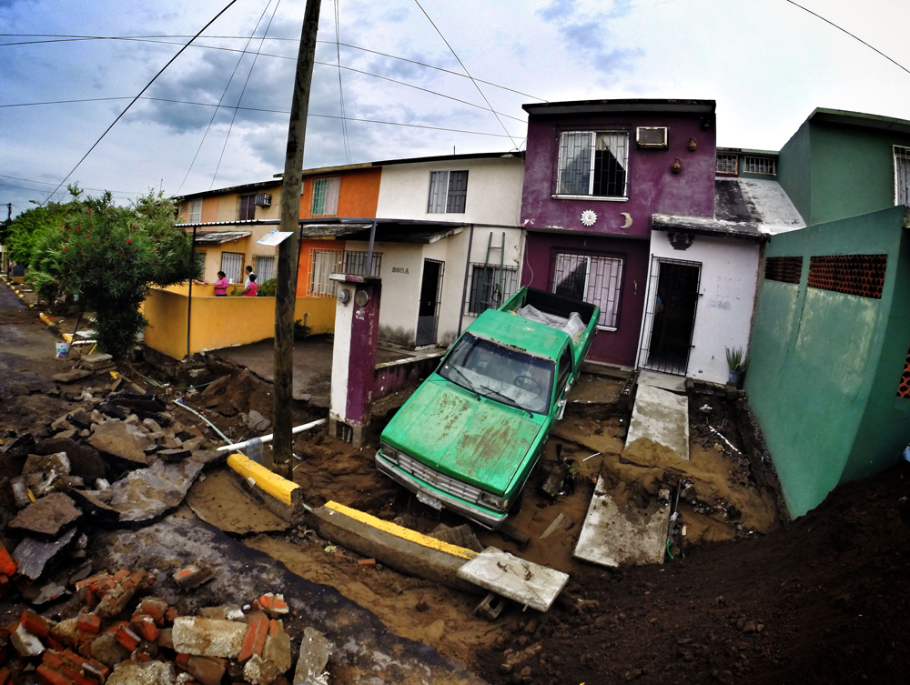 De acuerdo con los reportes de Protección Civil, uno de los hundimientos más fuertes se registró en el Infonavit Buena Vista, donde el socavamiento en la calle Esmeralda, entre Cóndor y Amatista, atrapó dos vehículos, y amenaza con echar abajo una vivienda.