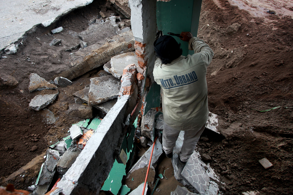 En la segunda vivienda afectada en esa zona, el socavamiento generó que el piso de la cochera se hundiera, quedando atrapado un vehículo particular.