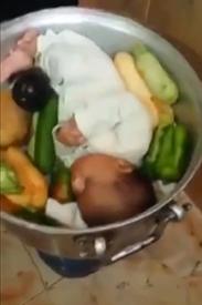 Una pareja de Arabia Saudí publicó un vídeo en las redes sociales en las que simulaban que su hijo recién nacido, dentro de una olla y rodeado de verduras, sería parte de su cena.