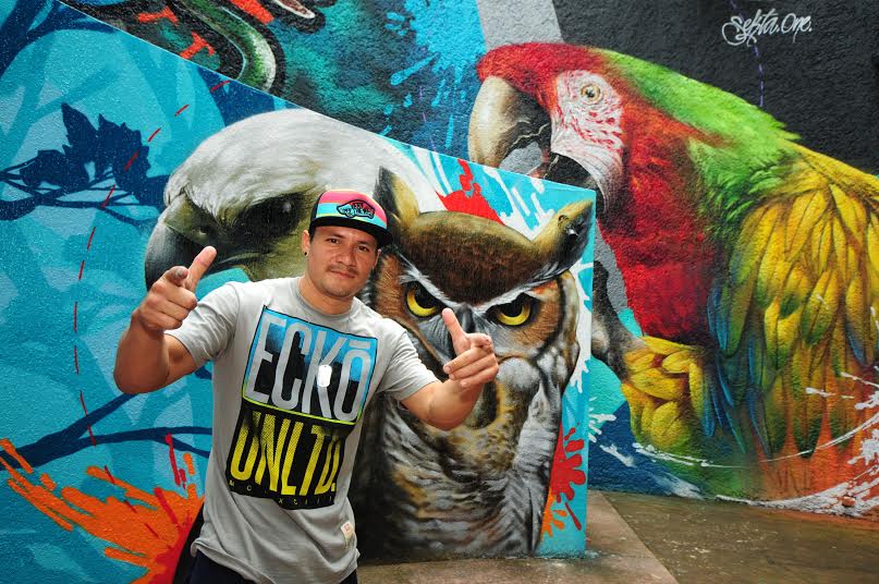 El artista urbano explicó que para mostrar ejemplo a los jóvenes de cómo se evoluciona de la práctica del arte urbano al neomuralisno, siempre con permiso de las autoridades, quisieron crear una imagen que contrastara con Los Tecajetes, llena de color y policronía, que definen como una crónica de los rapaces supremos del parque.