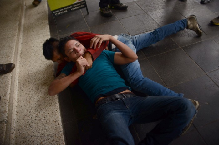 Dos jóvenes se agarran a golpes mientras una multitud intenta separarles sin éxito. Las autoridades simplemente, no se hicieron presentes.
