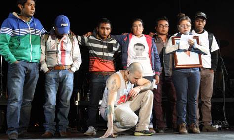 Calle 13 da la palabra a padres de Ayotzinapa en concierto