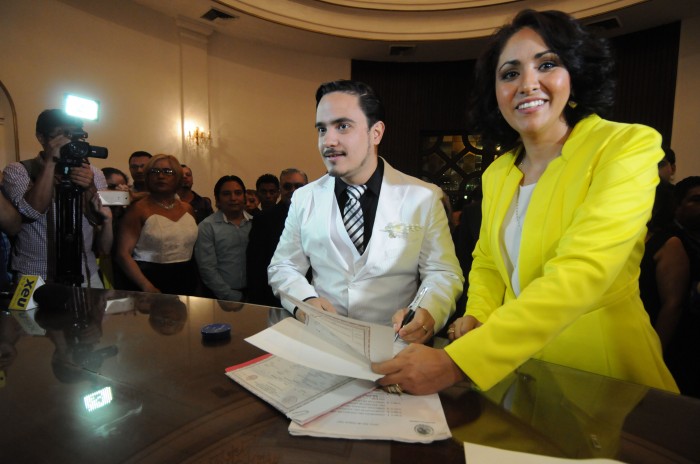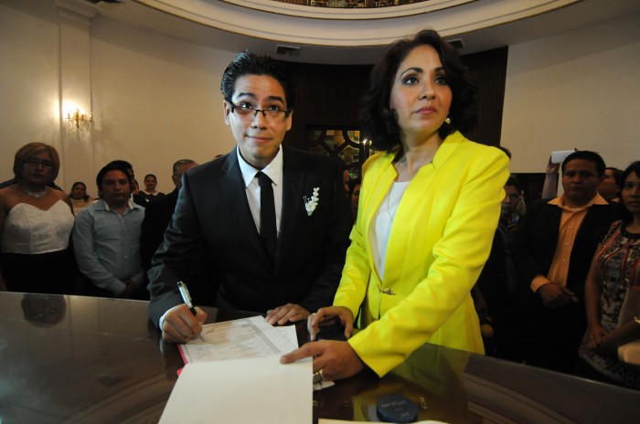 Familiares, amigos y medios de comunicación presenciaron la victoria de los contrayentes ante instancias legales, sociales y manifestantes cristianos que se postraron en las afueras del Registro Civil.