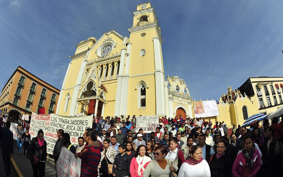 Llegan trabajadores del SAS a Xalapa, quieren su aguinaldo