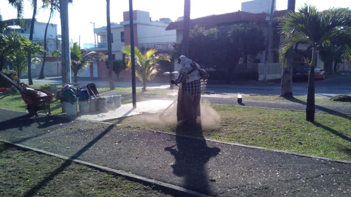 Veracruz, Ver.- En un esfuerzo por mantener la imagen urbana de la Ciudad y Puerto de Veracruz, el Gobierno Municipal de Veracruz a través de la Dirección de Centro Histórico, Mantenimiento Urbano y Ornato, lleva a cabo acciones de mantenimiento en espacios públicos como en el parque Los Pinitos, la Plaza de la República, así como en los alrededores del albergue de la tercera edad y el DIF de la colonia Lázaro Cárdenas.