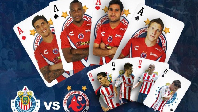 En las cartas, los futbolistas de Veracruz aparecen como ‘ases' y los jugadores de Guadalajara como ‘reinas'.
