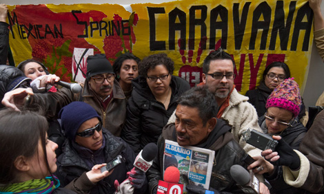 Nueva York. El profesor Felipe de la Cruz, representante y vocero de los familiares de los 43 estudiantes de la Escuela Normal Rural de Ayotzinapa desaparecidos, aseguró que “tocarán todas las puertas” dentro y fuera de México “para exigir justicia y no permitir la impunidad” en el caso Iguala, y anunció el inicio de tres caravanas de parientes de los alumnois que pasarán por decenas de ciudades de Estados Unidos y culminarán en Nueva York a finales de abril.
