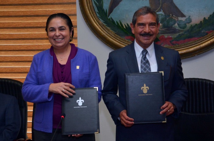 Xalapa, Ver.- Alberto Sosa Hernández, Magistrado Presidente del Tribunal de Justicia del Poder Judicial de Veracruz y la Dra. Sara Ladrón de Guevara, Rectora de la Universidad veracruzana, se reunieron dentro del Poder Judicial para la firma de un convenio para consolidar conocimientos y mejores profesionistas.