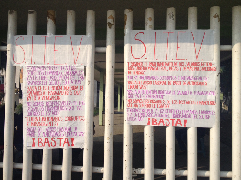 Córdoba, Ver.- (AVC) El Sindicato Independiente de Trabajadores de la Educación de Veracruz (Sitev), en demanda de los pagos retenidos desde hace un mes a los docentes y personal de área de intendencia, se mantiene en paro de brazos caídos en escuelas de todos los niveles de la zona centro.