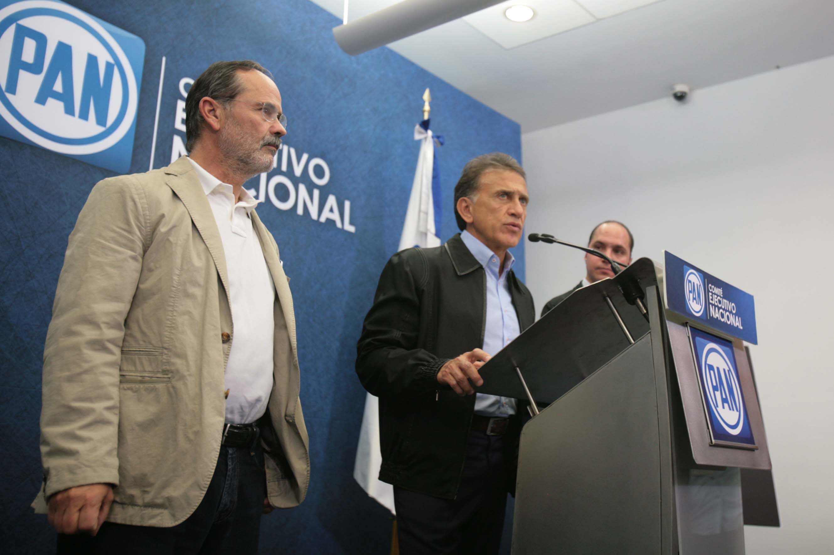 Gustavo Madero Muñoz, Presidente del Comité Ejecutivo Nacional del PAN, acompañado de Eduardo Aguilar Sierra, Coordinador Jurídico del CEN del PAN, y de Miguel Angel Yunes Linares, dio a conocer 6 denuncias penales presentadas por la Auditoría Superior de la Federación contra funcionarios de la actual administración del Gobierno del Estado de Veracruz que encabeza Javier Duarte de Ochoa y de la anterior que estuvo a cargo de Fidel Herrera Beltrán.
