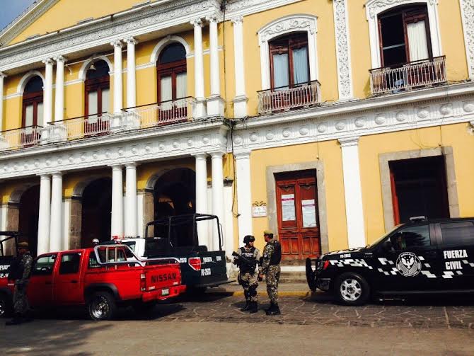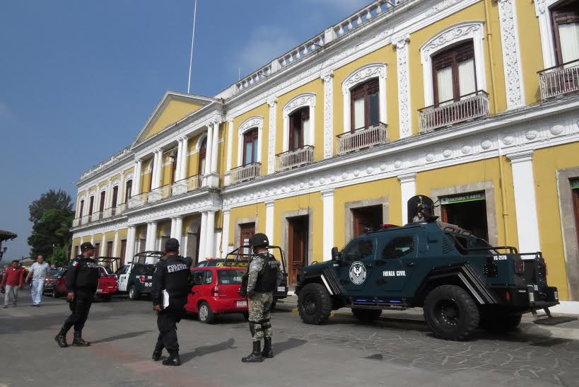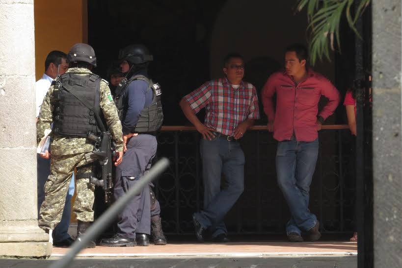 El Palacio Municipal fue sitiado por las fuerzas estatales, en tanto, los ahora ex elementos de la policía local, fueron llamados al pase de lista para desarmarlos y entregaran su uniforme y acreditación como policía municipal.