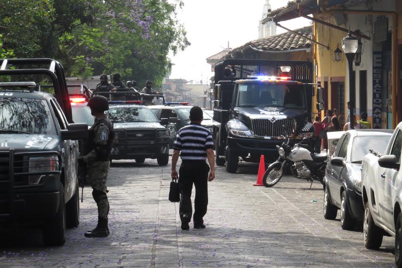 Desde al filo de las 08:00 horas, arribaron fuerzas estatales a bordo de patrullas de la Fuerza Civil y de la Secretaría de Seguridad Pública, para relevar a los policías municipales de Coatepec.