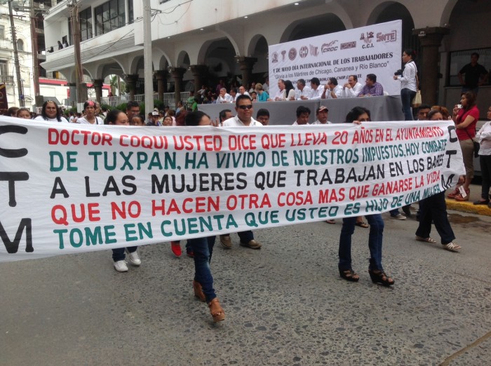 Tuxpan, Ver.- (AVC) Como cada 1 de mayo, el desfile conmemorativo al Día de Trabajo se volvió una pasarela de reclamos en demanda de mayores oportunidades laborales, así como de críticas a los perjuicios ocasionados por la reforma energética.