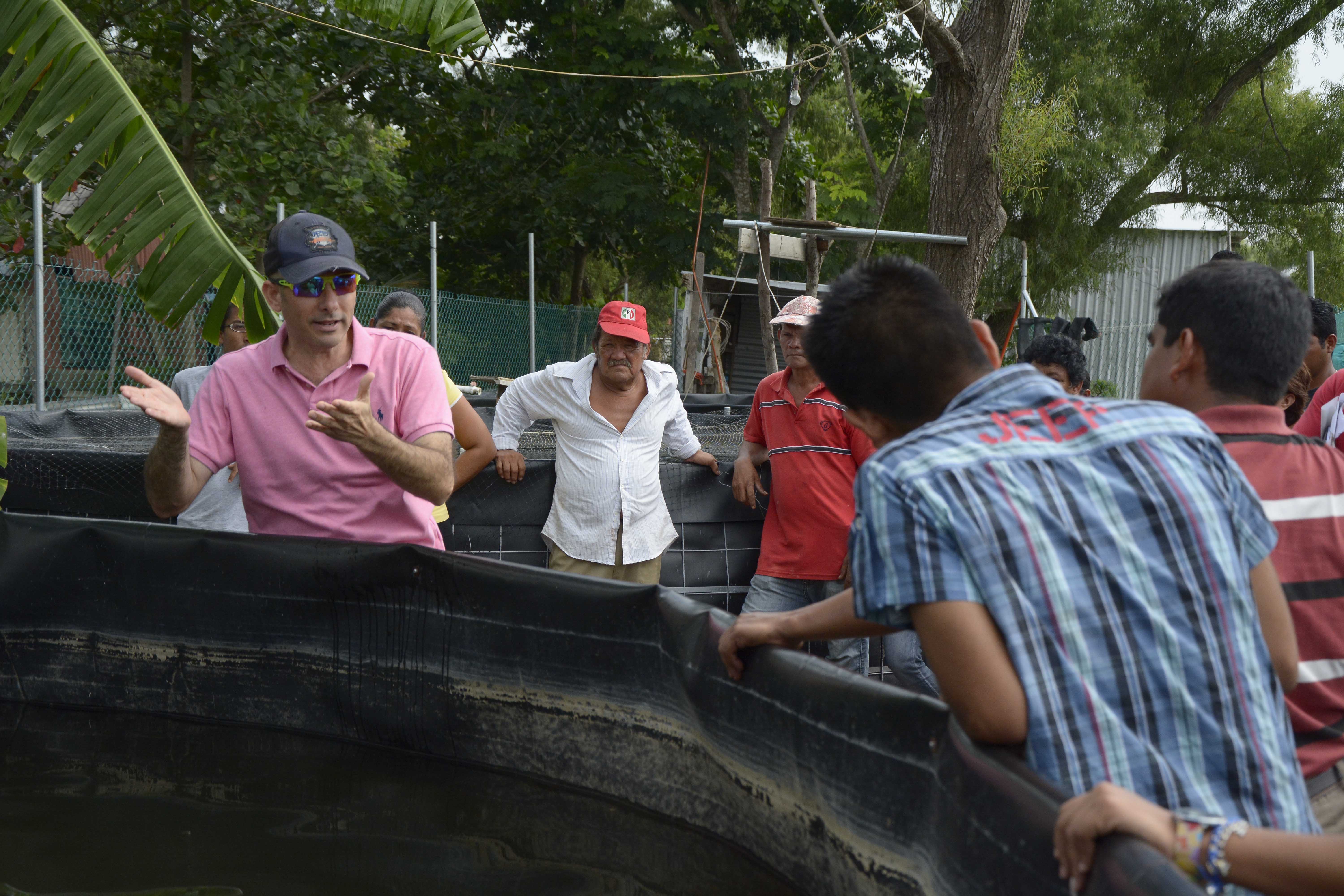 La capacitación tuvo como sede los estanques instalados en la Laguna "La Espuma" ubicada en la Colonia Los Predios, en donde por cuatro horas los participantes aprendieron las técnicas y métodos que permiten la mejor reproducción de los peces.