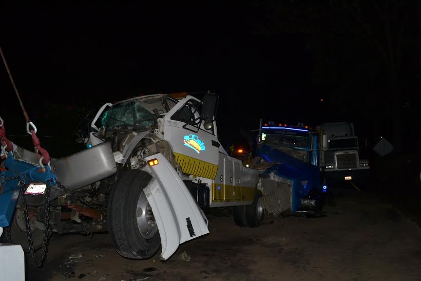 Tráiler arrastra a grúa y camioneta, chofer se da a la fuga