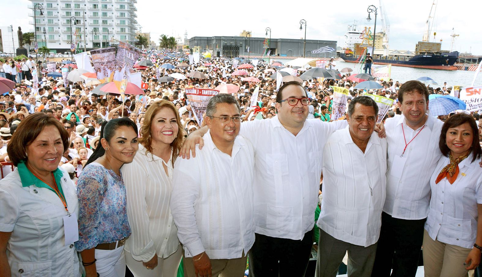 Ante miles de profesores de toda la entidad, reunidos en la Macroplaza del Malecón, el mandatario reconoció la lucha que durante 19 años ha emprendido el Equipo Político de la Sección 32 del SNTE por defender los derechos de los docentes.