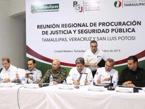 La reunión fue encabezada por los Procuradores Ismael Quintanilla Acosta, Luis Ángel Bravo Contreras y Federico Garza Herrera, de Tamaulipas, Veracruz y San Luis Potosí, respectivamente.
