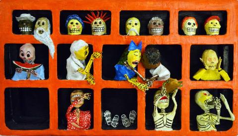 Complementa la exposición: la Colectiva Fotográfica Día de Muertos, de la Dirección de Culturas Populares-CONACULTA, que reúne diversas imágenes de la celebración, como son música, danza, altares, ofrendas, mercados y tianguis.