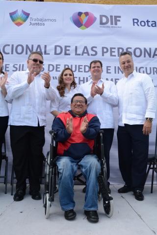 “Hoy que es el Día Internacional de las Personas con Discapacidad reafirmamos el compromiso que tenemos de seguirlos apoyando, de darles mejores oportunidades no sólo con la entrega de sillas de ruedas, sino también con las capacitaciones que ofrecemos y apoyo en sus estudios; acérquense al DIF Municipal para que los podamos ayudar a conseguir un mejor trabajo y mejorar su nivel de vida”; manifestó, Ramón Poo.