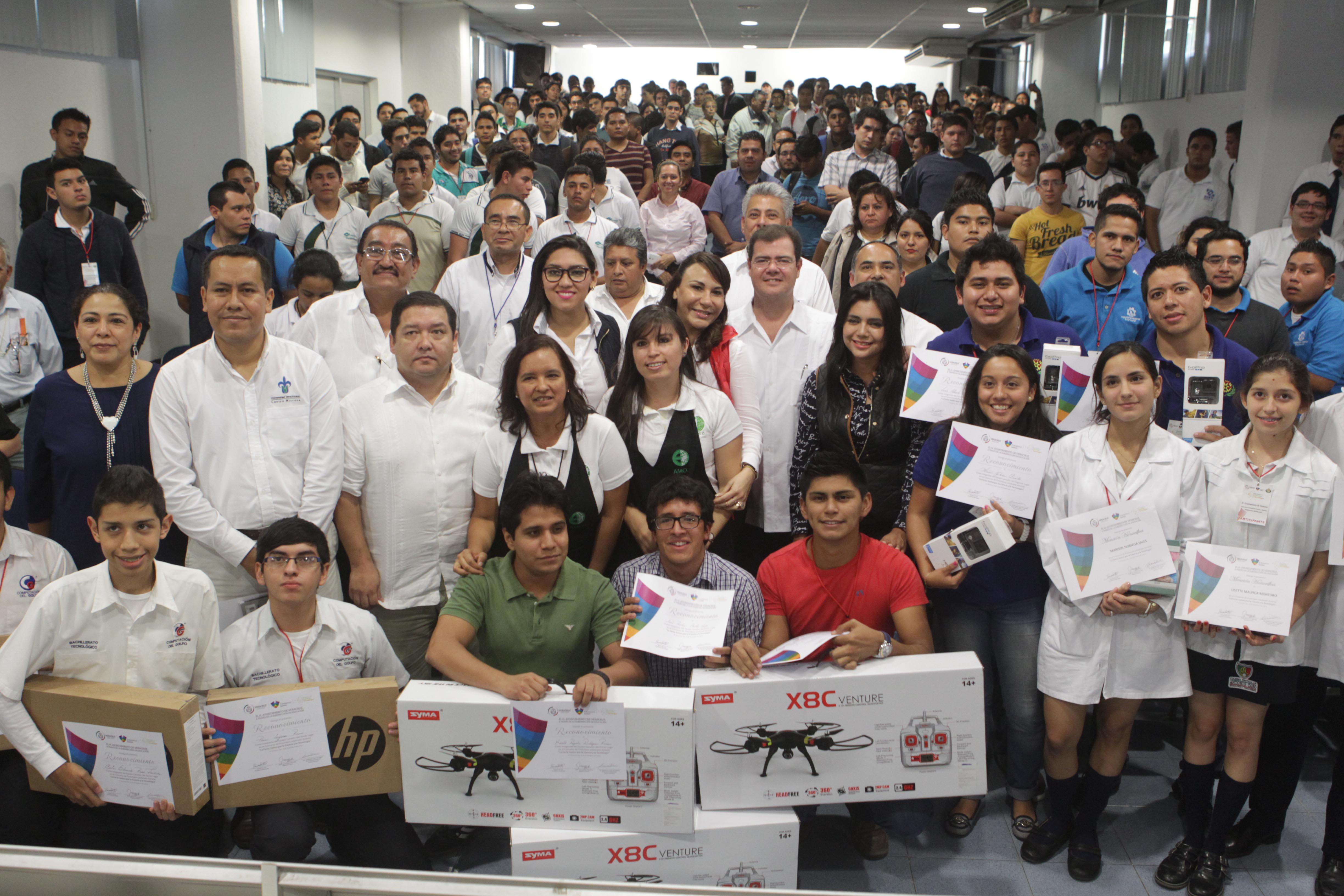 Los proyectos premiados, cada uno con 3 integrantes, contaron con los indicadores de innovación, conocimiento científico, utilidad, factibilidad de implementación, y funcionamiento fueron: primer lugar, ITV con el proyecto "Control Automático de Riego" teniendo como premio 3 Drones X8C Vento; segundo lugar, ITV con el proyecto "Proceso Maja E85" teniendo como premio 3 cámaras Go Pro; tercer lugar Computación del Golfo con el proyecto "Buscador" obteniendo como premio 3 laptop; y con mención honorífica, Antonio Caso con el proyecto "Tanque Lleno" teniendo como premio 3 tabletas.