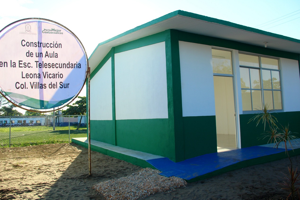 Coatzacoalcos, Ver.- El presidente municipal, Joaquín Caballero Rosiñol, inauguró la tercera aula de concreto que se construye durante esta administración en la Telesecundaria Leona Vicario Fernández, de la colonia Villas del Sur: hace dos años todos los salones de clase eran de lámina.